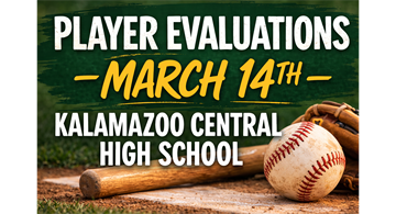 Player evaluations will be held March 14 at Kalamazoo Central High School in the auxiliary gym. See your email for the full schedule and details.