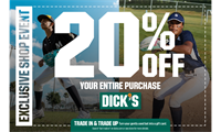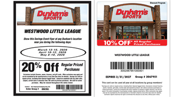 Westwood Little League families can receive 20% off their entire purchase at Dick’s Sporting Goods March 20–23 during our exclusive shopping event.